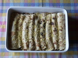 und diese dann aufgerollt und in eine Auflaufform gelegt.